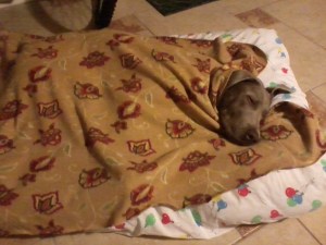 Every time a dog is to stay with us, I like to do a little bit of research on that particular breed, but since Josie’s mom told me that Josie was a lab and I knew about the breed, I decided to let it go.  Anyway, Josie has come to stay with us a couple of times, but her behavior was not that of a lab.  I looked at her very carefully and noticed her quirks and behavior and started my research.  Josie, I found out, happens to be a Weimaraner.  Aha!  Now her behavior makes sense.  As per www.terrificpets.com, a Weimaraner is, “Known to be bold and excessively rambunctious, this breed loves to hunt and run. If not allowed to do what their heart truly desires and is pent up, they will develop a destructive manner with sheer frustration. With a tendency to be headstrong and stubborn, lack of exercise or running will force these traits into a negative and unhappy dog. They need a yard that is large enough to run and explore in, and a home that allows them to sleep indoors on cool and cold nights, due to their very short hair.”