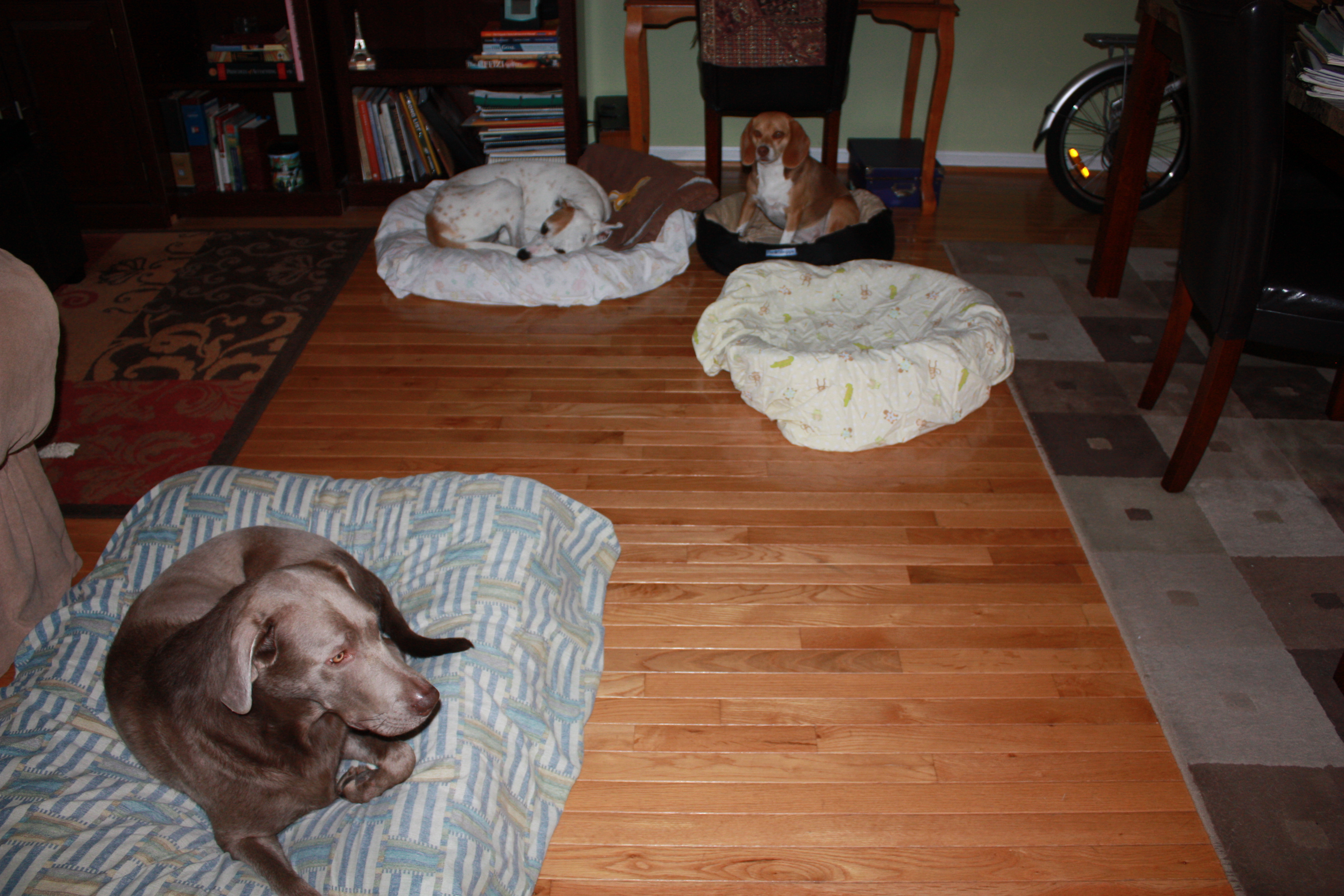 Most of the doggies that stay with us, love to sunbathe and the most sought out place in my house is by the sliding door that leads to the deck, as you can see by this picture.