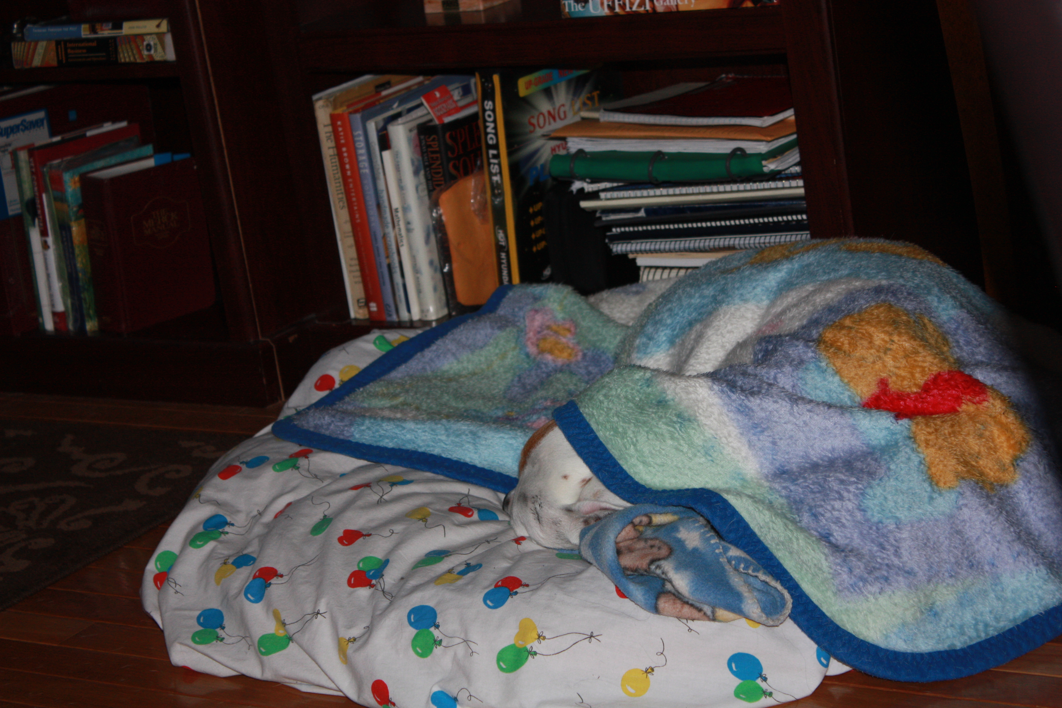 Yes, that is Alex under the covers. Because she is on bed rest per the vet’s instructions, she put on a bit of weight. Wow! It only took 11 years to get her to put on a couple of pounds. Ok., maybe not a couple of pounds, but at least 1 lb. Please, allow me to dream.