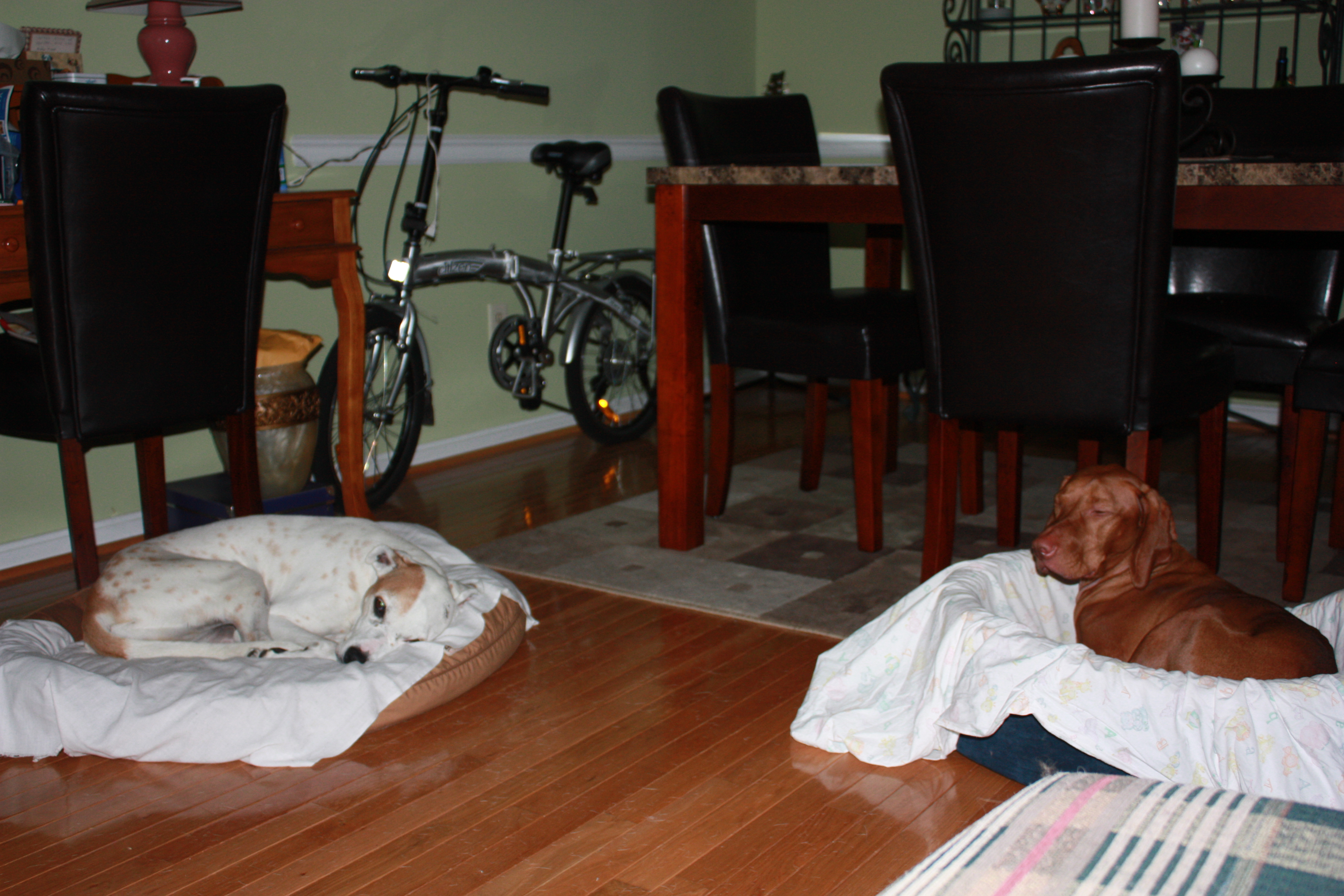 Alex is so used to us taking pictures that not even the flash of the camera faces her anymore.  This is what they look like after our morning walk, relaxed and a little tired.
