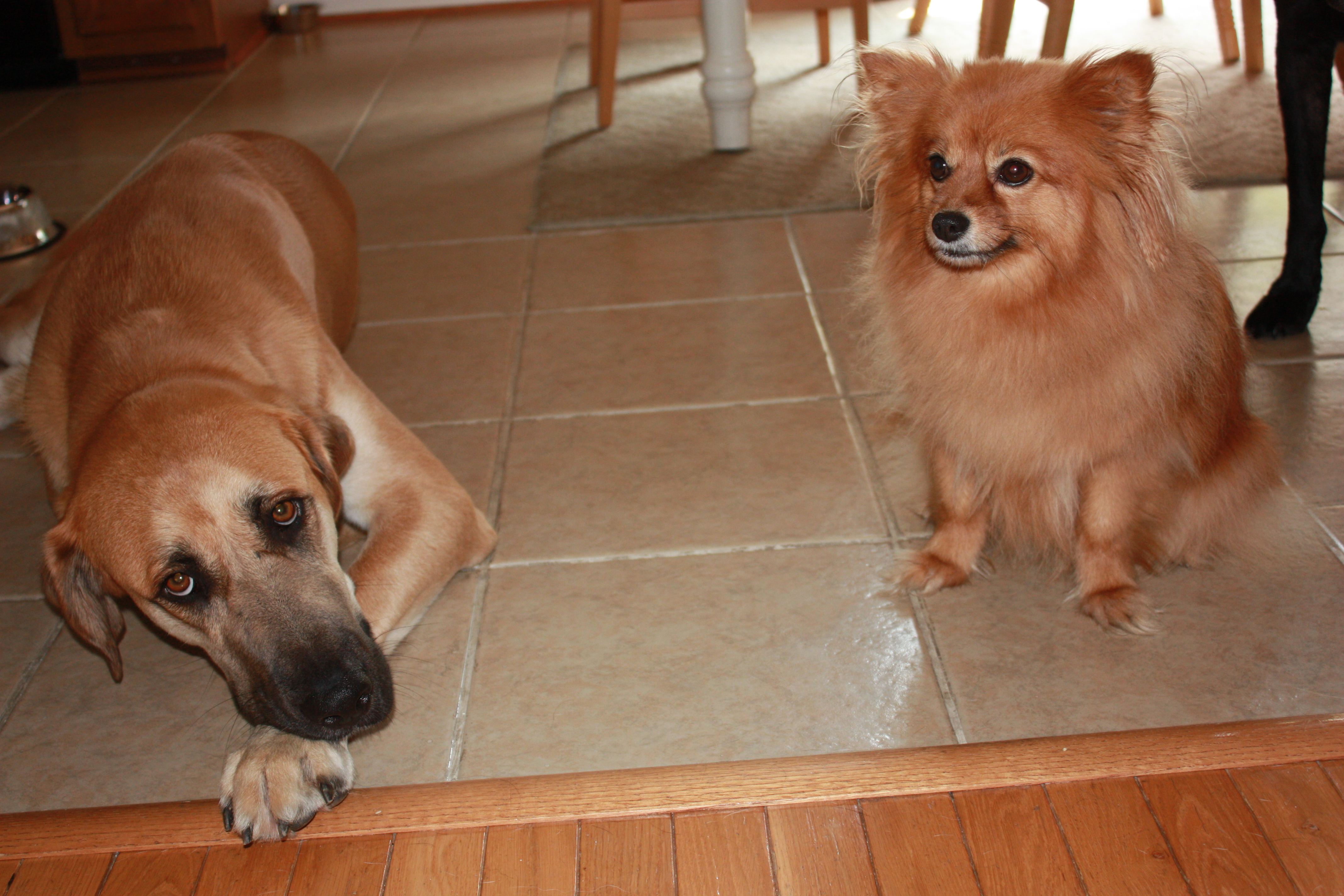 Bear with a frequent visitor, Roxy. She usually likes small male dogs, but for some odd reason she warmed up to Bear pretty fast. Cute couple.