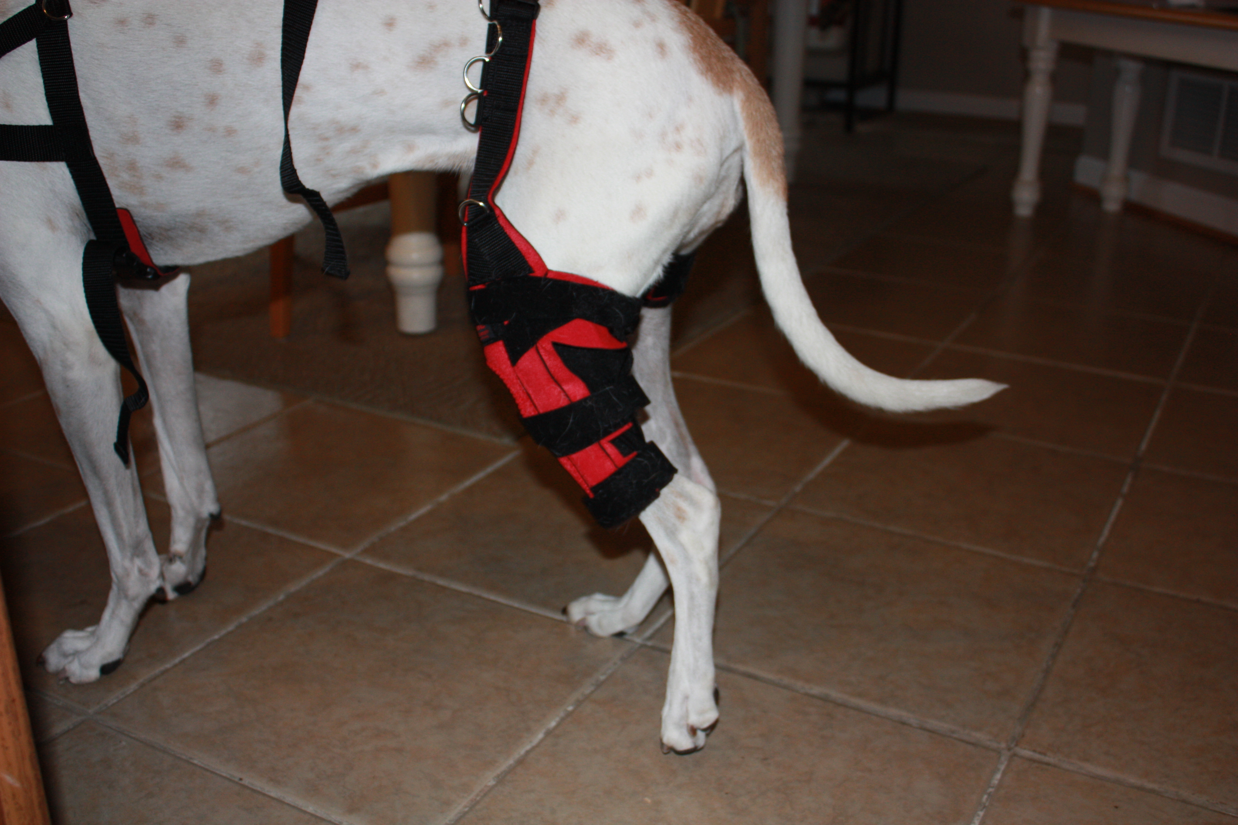 Alex’s is a complete tear. How long with a brace? About a year or so. She’ll be going for hydrotherapy sometime in May because the cold seems to aggravate her injury and to transport her from home to the hydro facility and back now that is cold would not work for her.
