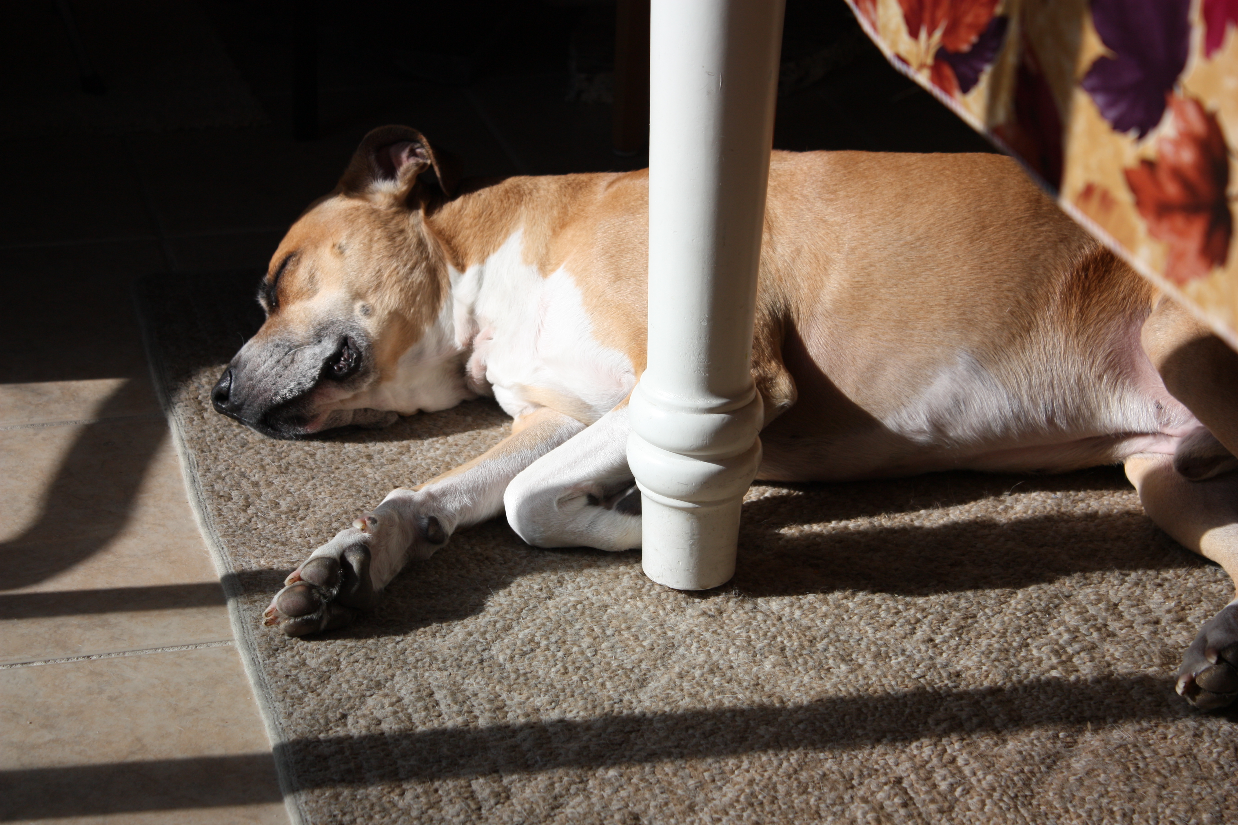 This is one of my regulars, Dexter, a boxer mix. Dexter loves to sunbathe indoors or outdoors. He is a bigger sun worshipper than my daughter, Alex. Bella was not very good at dealing with other dogs once we were inside the house, but…
