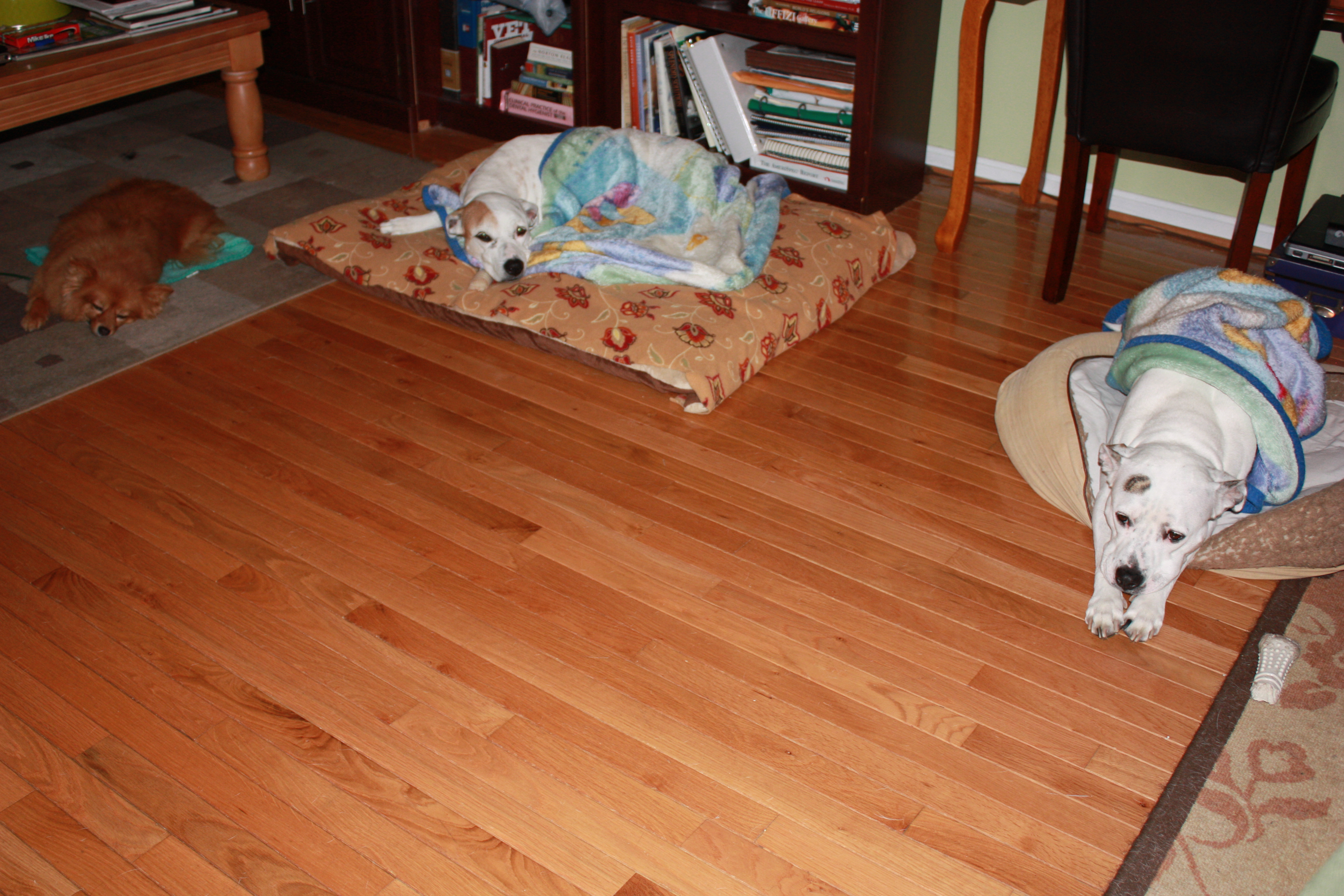 Because Bella is the most energetic of all 3, she gets to walk the longest. What happens once we get home and she is cleaned and fed? She is out like a light. I enjoy walking with them, and I know they need those walks, but I also do it because once at home they are relaxed and tired, therefore living with them is enjoyable rather than a burden.