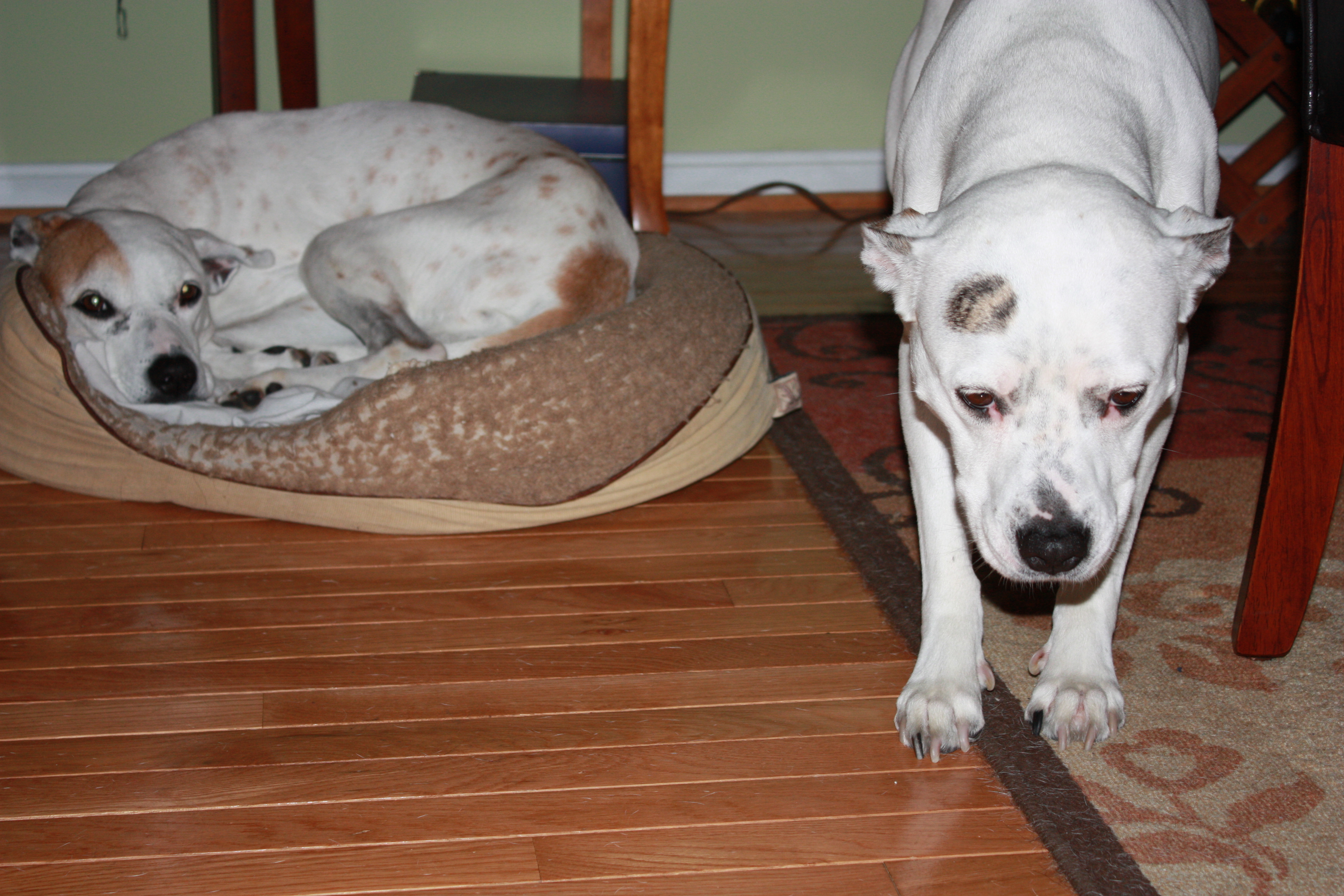 deckresto6We try to include Alex and Bella in as many things as we possibly can in order to get them used to different things.  Once we started working on the deck, they fell asleep in the kitchen by the sliding doors.  What does that teach them?  Self-control.  Training your dog should be part of your every day life, and this is a perfect example of that.  How does your canine companion help you tackle chores?  Have a great Sunday!
