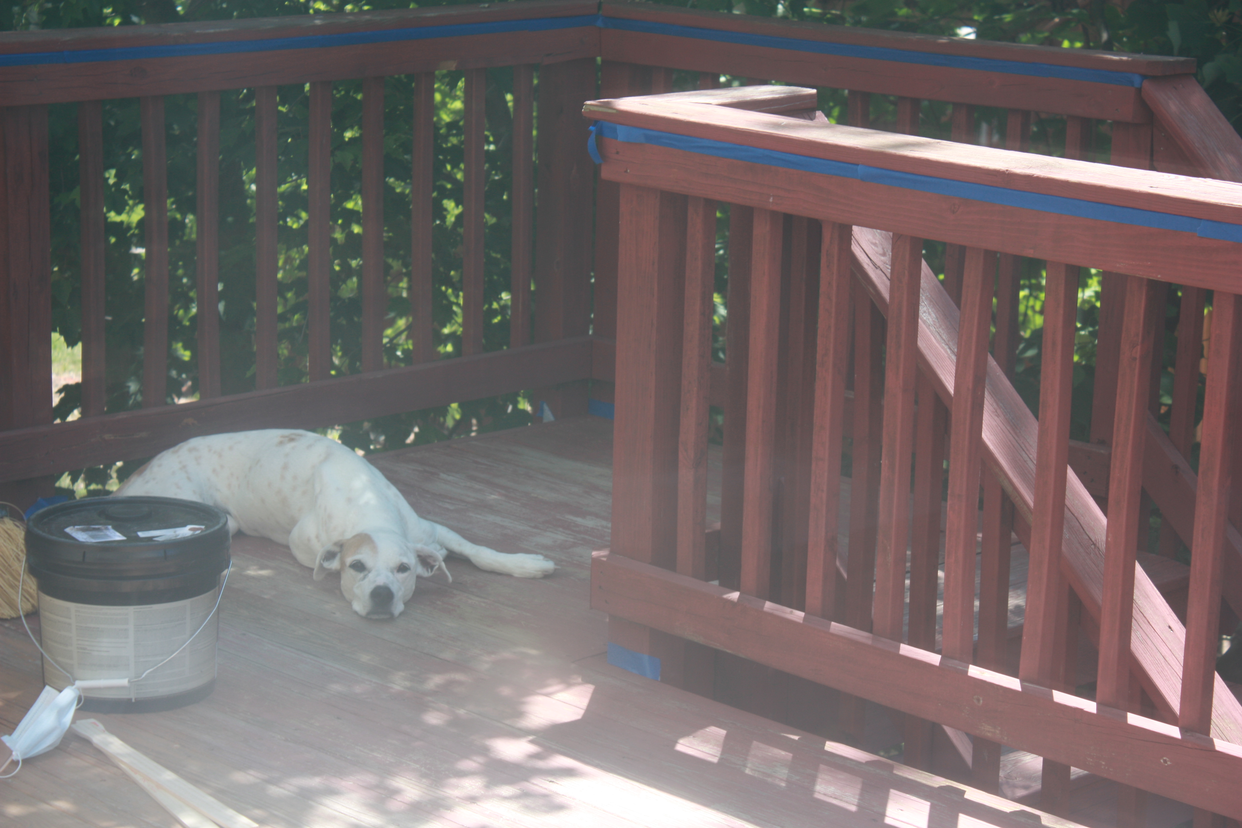 deckresto5Once we had a plan in place, Bella made sure that we knew the areas where the most attention was needed by pointing with her little nose.  She was such a big help to this project.