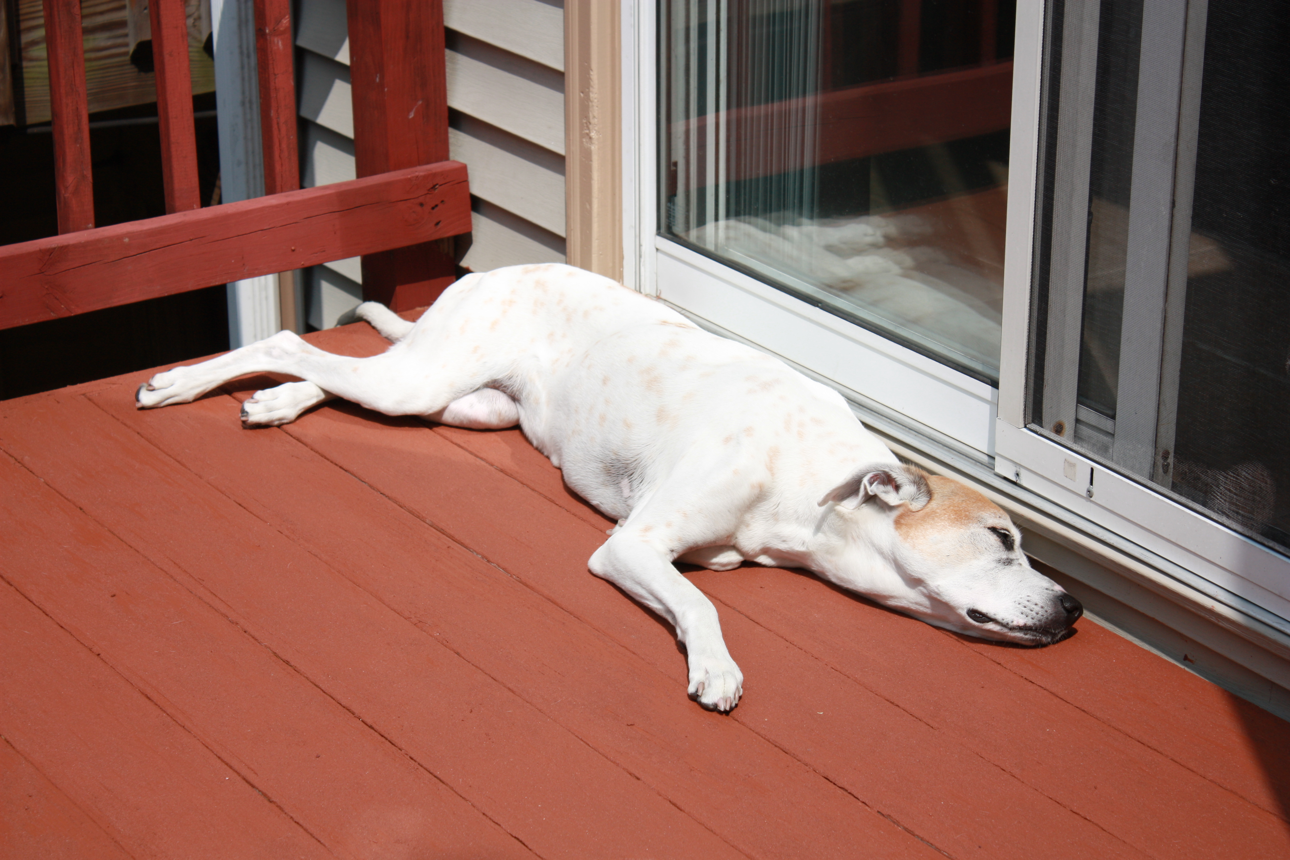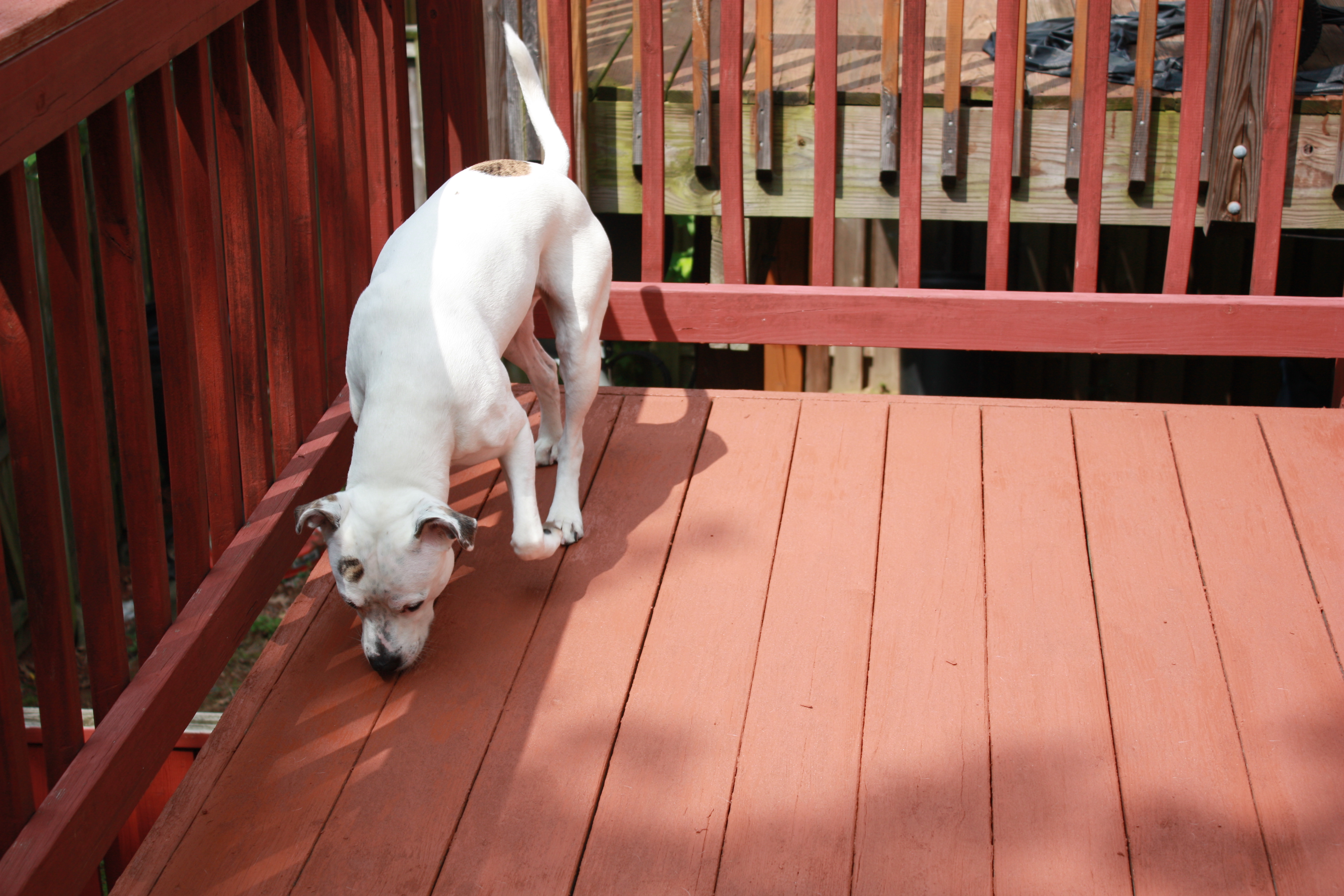 After we finished making our deck look decent, Alex decided to go and check it out. Yes, that is how she checked out our work and I’d venture to say that she was happy with the end product.