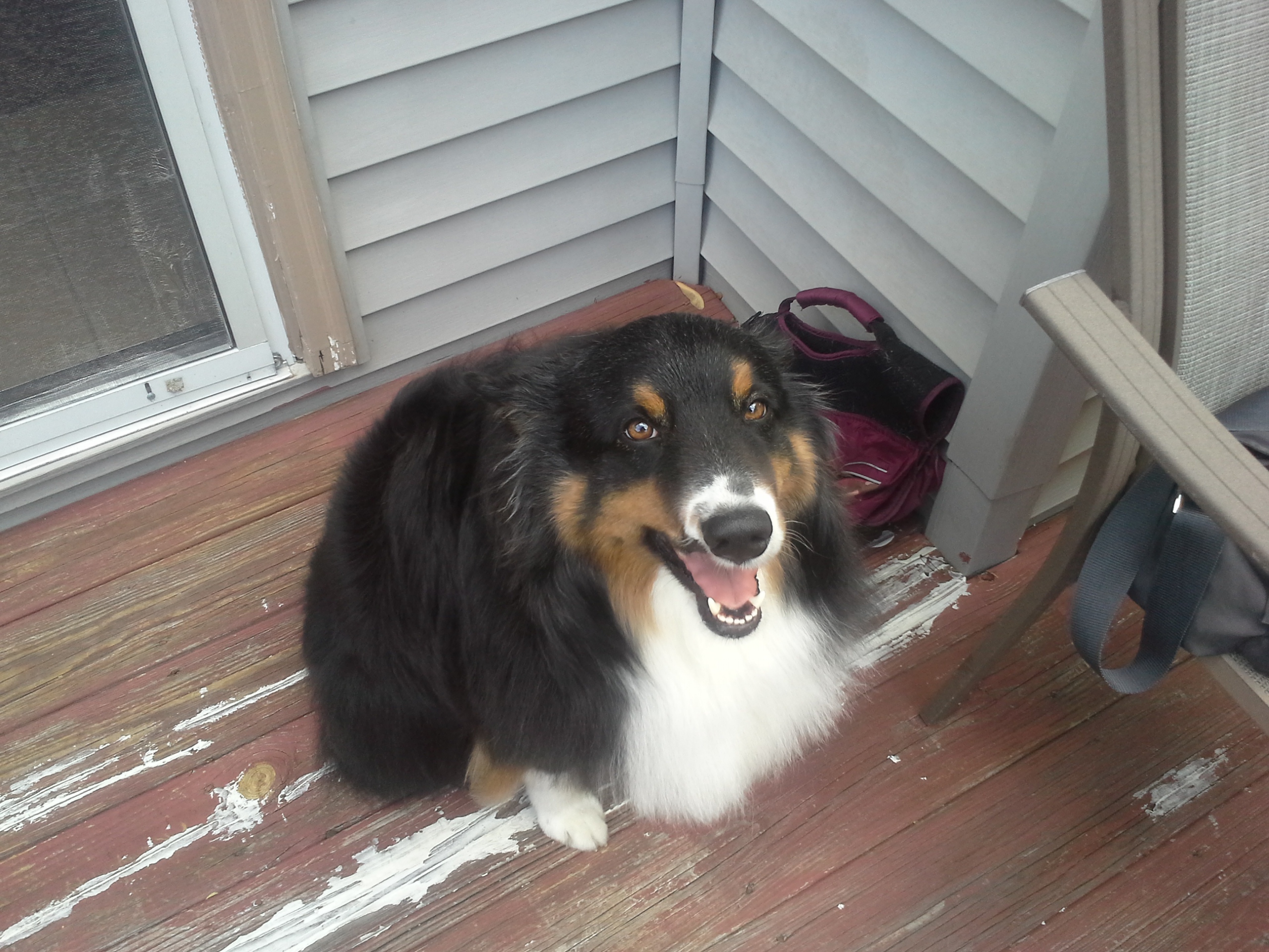 Alex, “Bella, smile for mom, please!” Bella, “I will smile when I see a treat, and I don’t see it. Do you?”