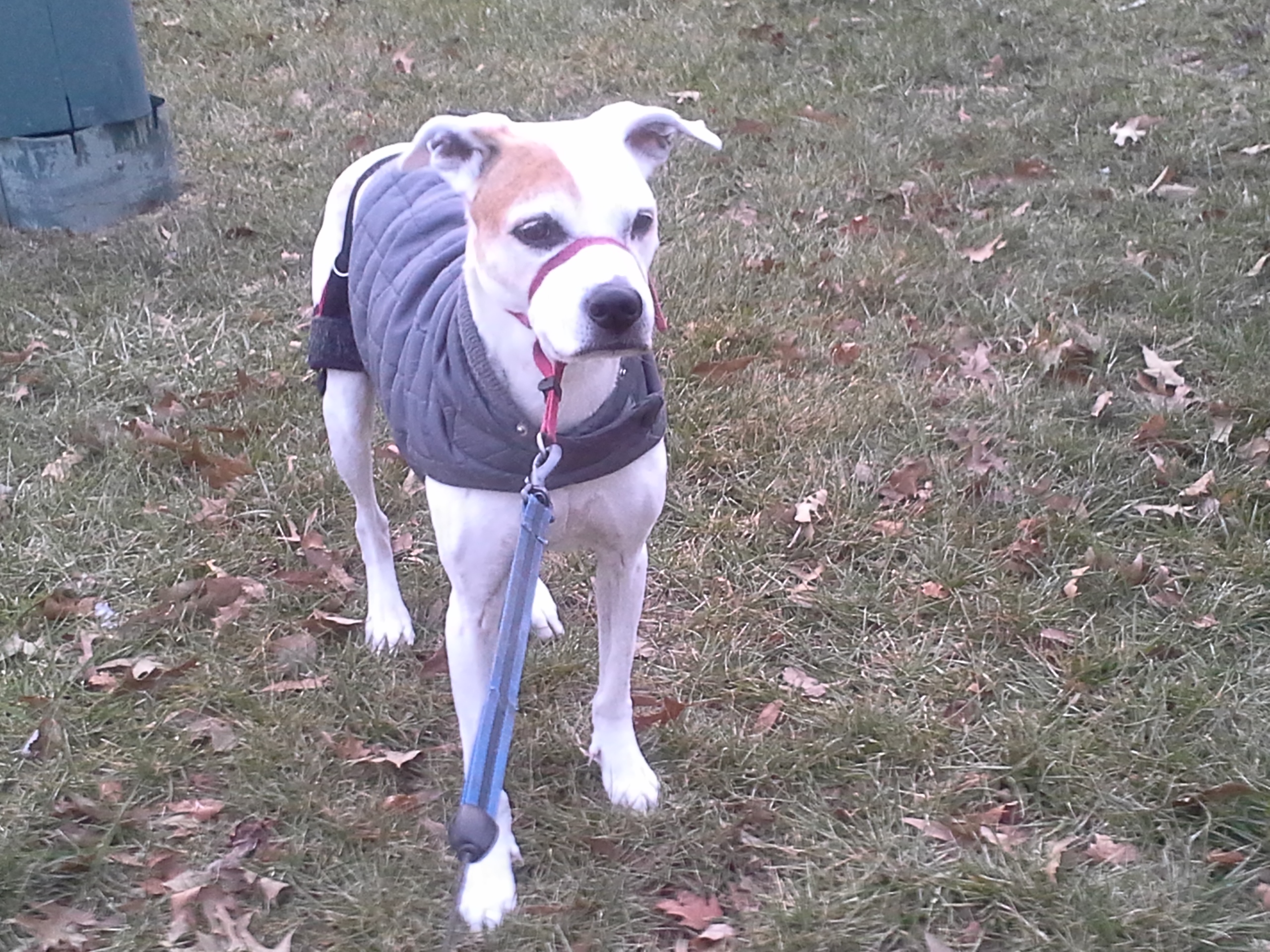 The above picture is of Dexter, a very handsome boxer mix, that used to stay with us often. Since Spring is taking its time to arrive, make sure that your canine companion is properly attired when you go out with him. Dogs that have short hair like Dexter need to wear a coat or sweater or both to keep them warm.