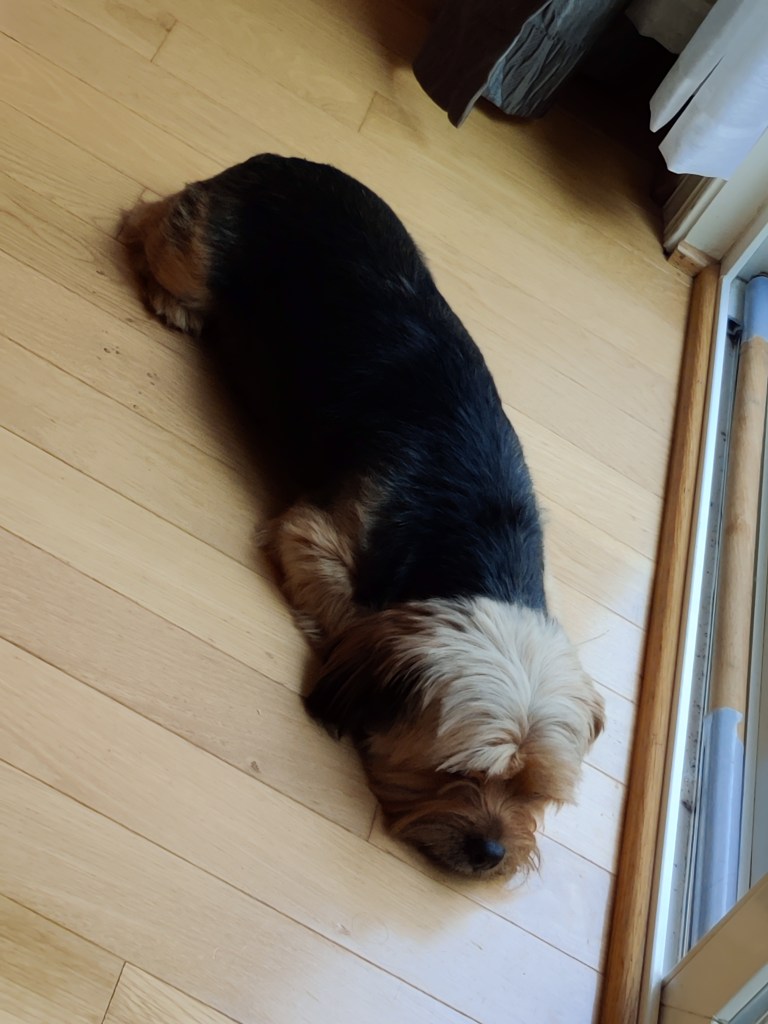 Roxie, “Please let me take a nap. Walks, mingling with other dogs and people is exhausting!”