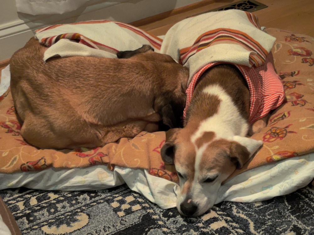 So, how did I get to walk them when it was raining? I found a nice parking lot not far from where we live, and that’s where we go to walk, or we go to Home Depot, Lowe’s, Petco, etc.