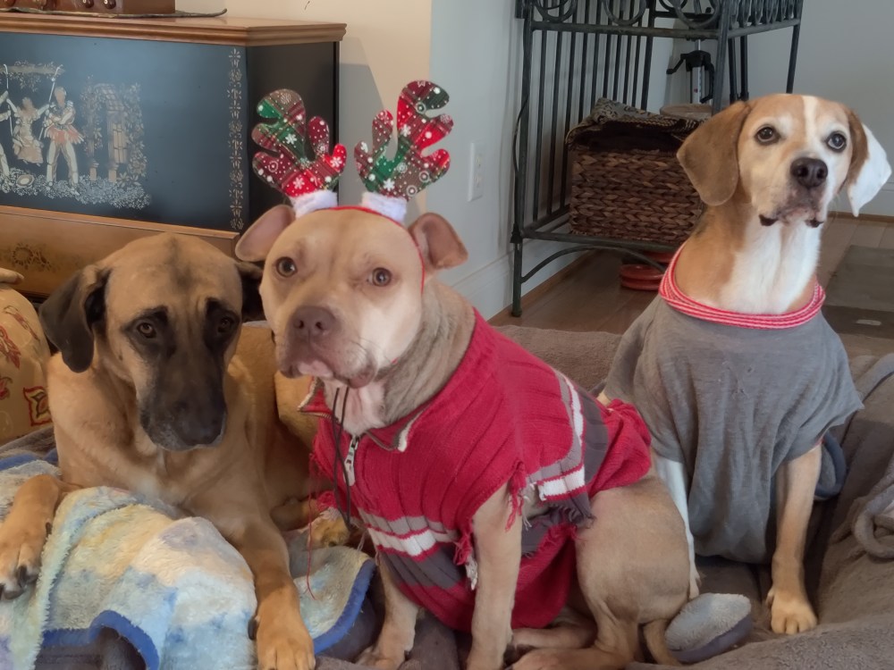 We already put up our tree and ornaments for Christmas, but we forgot to check if we had enough accessories for our canines, and you know what? We did! Btw, the one that kept her accessory on longer and without any complaints was, drumroll please, Zoe!