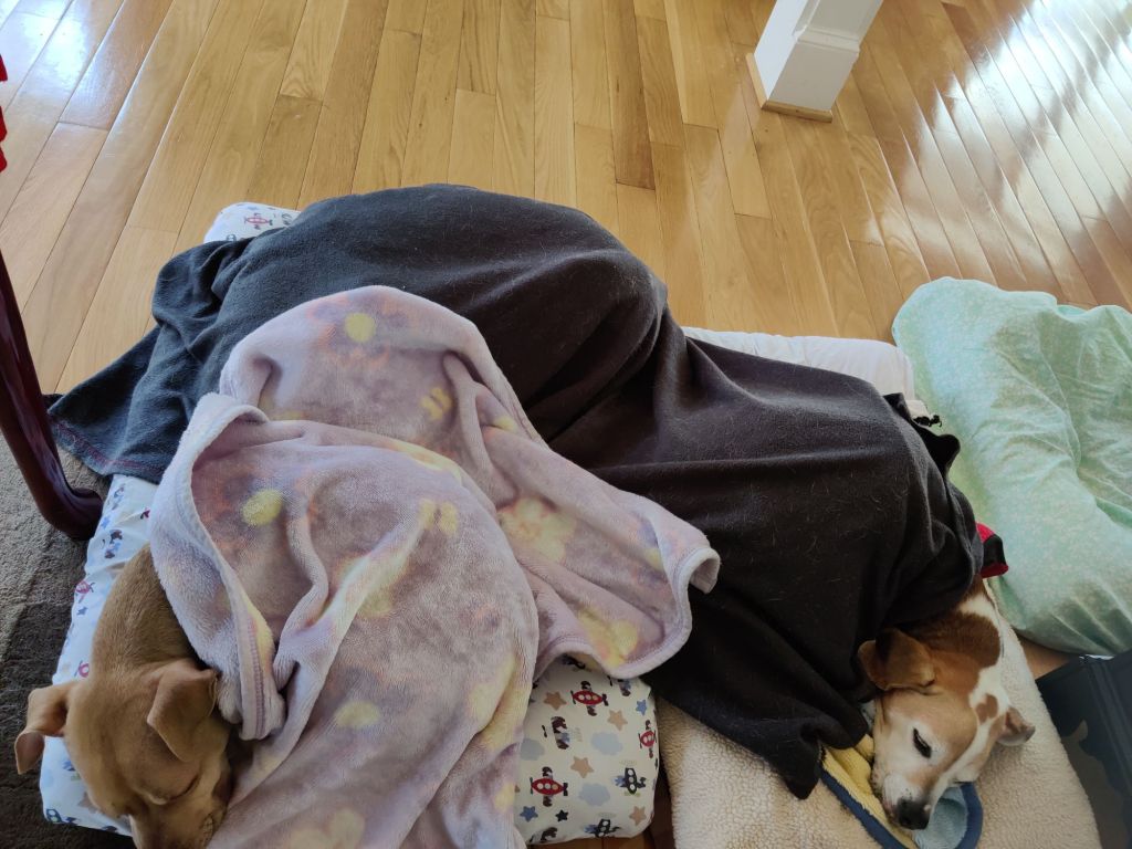 You can’t see Charlie because he’s covered completely by that dark gray blanket. Now, my question to you is, why in God’s green earth they don’t use the 3 beds available to them? They are only using 2 beds. Let me know what you think.