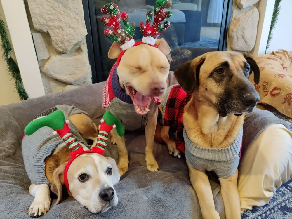 We hope that you had wonderful holidays with your dogs, family and friends. We had a peaceful, quiet time with our dogs at home and we had a good laugh at their expense after seeing pictures like the above. One thing is for sure, living with dogs is an adventure, and we have 3 dogs!