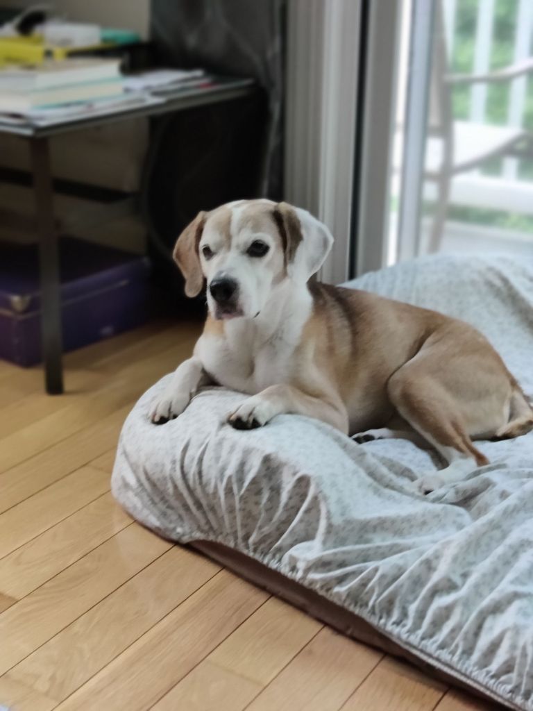 Abby is very cute. We’ve had some seniors dogs and I think they become so sweet when they get old. Their mobiloty goes down and they need you more, I think. An old will give you so much.